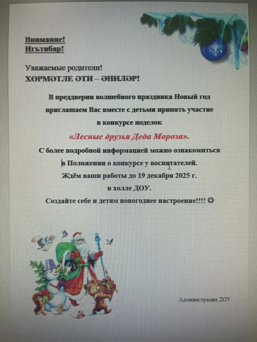 Конкурс поделок "Лесные друзья Деда Мороза" 11.12.2025