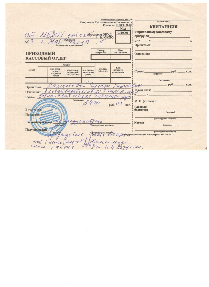 - В рамках знаменательного праздника 4 мая с 15.30 до 18.00 в холле ДОУ состоялась благотворительная ярмарка, посвящённая Дню Победы! Благодаря вашему активному участию собрано 6464руб. 80 коп. Вырученные деньги -5400 руб.- переданы в фонд Совета ветеранов Комсомольского района в присутствии Саматовой Ч. Ф. (родитель гр. № 7). 1100 руб. потрачены на подарки 2 ветеранам (посещение на дому). Огромное Вам спасибо от нас и наших воспитанников! Подтверждающий документ о передаче средств в Совет ветеранов.