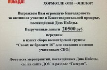 28 апреля 2025 г. в МБДОУ № 3 «Эллюки» проведена благотворительная ярмарка в честь дня Победы. Проведение благотворительной ярмарки в нашем саду уже давно стало доброй традицией. И каждый раз мы не перестаем радоваться этому событию. Ведь все взрослые и дети знают, что вырученные деньги — это наш, пусть и небольшой, но вклад в благородное дело, в нашу будущую победу. Каждый из посетителей мог приобрести понравившиеся ему товары — за символическую сумму, или же сделать пожертвование на свое усмотрение. Ребята из подготовительной группы №11 постарались как можно больше продать товаров. Вырученные средства будут отправлены в помощь участникам СВО. Большое сердечное спасибо родителям и сотрудникам детского сада за активное участие в благотворительной ярмарке.