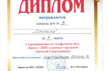 Поздравляем спортивную команду «Стрела» ДОУ № 3 с победой - III место- в соревнованиях по эстафетному бегу «Кросс -2025» в рамках городской «Детской Спартакиады». Молодцы, ребята!