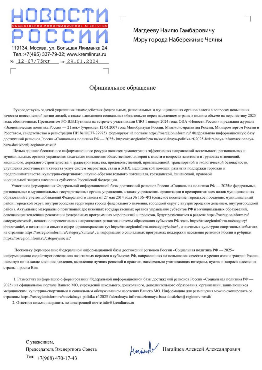 Руководствуясь задачей укрепления взаимодействия федеральных, региональных и муниципальных органов власти в вопросах повышения качества повседневной жизни людей, а также выполнения социальных обязательств перед населением страны в полном объеме на перспективу 2025 года, обозначенных Президентом РФ В.В.Путиным на встрече с участниками СВО 1 января 2024 года, ОИА «Новости России» и редакция журнала «Экономическая политика России — 21 век» формируют на портале https://rosregioninform.ru/ Федеральную информационную базу достижений регионов России «Социальная политика РФ — 2025» https://rosregioninform.ru/soczialnaya-politika-rf-2025-federalnaya-informaczionnaya-baza-dostizhenij-regionov-rossii/