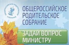 30 августа 2017 г. Министр образования и науки РФ Васильева Ольга Юрьевна, проведет Общероссийское родительское собрание.Оно пройдет в формате видеоконференции с прямыми включениями из регионов. Задать свой вопрос Министру можно уже сейчас. На сайте Минобрнауки России для этого открыт специальный раздел "Общероссийское родительское собрание".