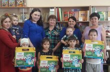 Подарки вручил Профсоюз образовательных организаций в лице председателя профкома ДОУ Ситдиковой В.Р.. Сотрудники ДОУ и их дети получили портфели, наполненные канцелярскими товарами, которые очень пригодятся им в школе. Дети с благодарностью приняли подарки.