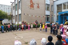Сегодняшний день начался с торжественной линейки, где наших воспитанников поздравила заведующая Гульсина Самигулловна, а чуть позже для детей подготовительных групп было проведено развлечение «Как Иван в школу пошел»