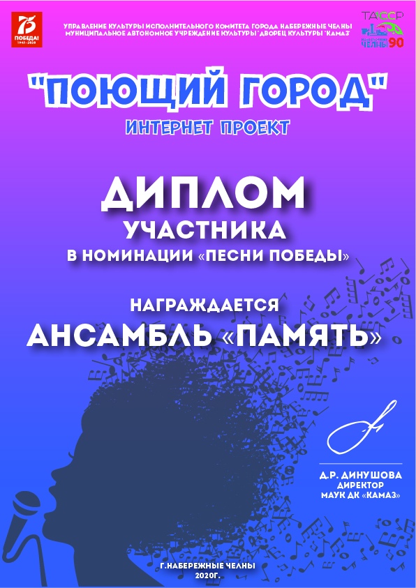 Диплом 1 место городского конкуса-акции "Написано войной"2020