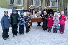 25 февраля дети стали участниками Масленичных гуляний. Любимые персонажи детей, скоморохи, устроили веселые масленичные забавы. Дети соревновались в смелости и находчивости, силе и ловкости, смеялись над шутками скоморохов.
