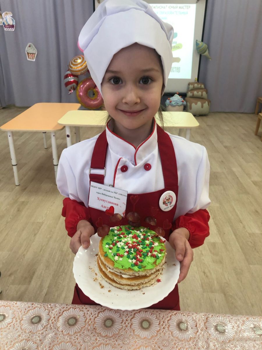 Наша воспитанница подготовительной группы №6 Хуснутдинова Аделя приняла участие в конкурсе Юный мастер – компетенция «Кондитерское дело».