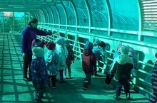 В рамках обучения детей безопасному поведению на дороге дети группы #6 с педагогом Шафигуллиной Г. Ш. сходили на целевую прогулку к надземному пешеходному переходу.
