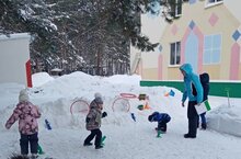 В нашем детском саду прошли зимние спортивные соревнования среди воспитанников средних групп. Дети соревновались в беге, сборе ледяных кристаллов и др.