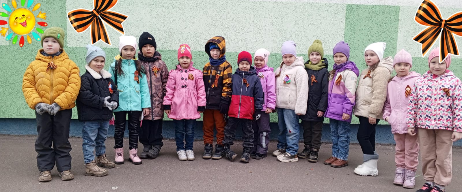 Приятно наблюдать как Георгиевская ленточка гордо развивается на груди у воспитанников, педагогов и сотрудников детского сада .
