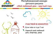 Конкурс детского рисунка 02.09.2016 Внимание! Конкурс детского рисунка! Объявляется Республиканский конкурс детского рисунка «Мой любимый дом – круглый год» от компании ДОМКОР. Приглашаем принять активное участие. Для этого достаточно нарисовать рисунок и принести его в детский сад. А мы отправим в компанию ДОМКОР. С положением о конкурсе можно ознакомиться в разделе НОВОСТИ. Желаем удачи и побед!