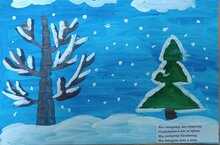 Дети изобразили всю красоту зимней поры — пушистый снег, заснеженные деревья, катания на санях и коньках, веселые игры и зимние забавы всей семьей!