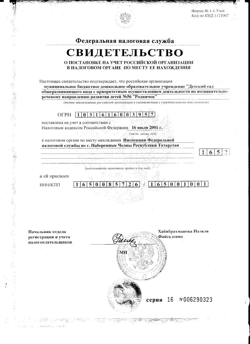 Свидетельства о постановке на учет в налоговый орган