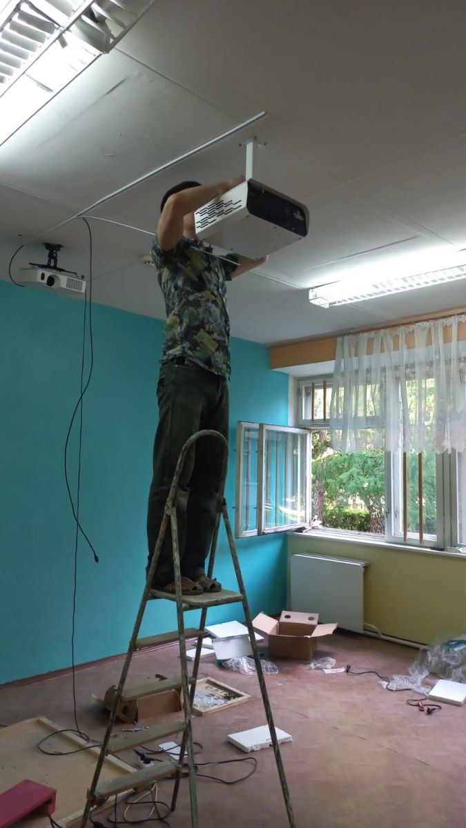 Опубликовано: 08.07.2022В течение двух дней квалифицированные специалисты крепили интерактивную стену, устанавливали интерактивный короб и проектор. И уже 10 июля работы по установке были закончены.