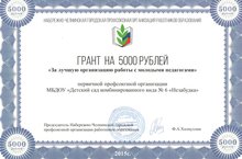 Коллектив МБДОУ №6 стал победителем в городском профсоюзном конкурсе "Лучшая организация работы с молодыми педагогами" 21.12.2015