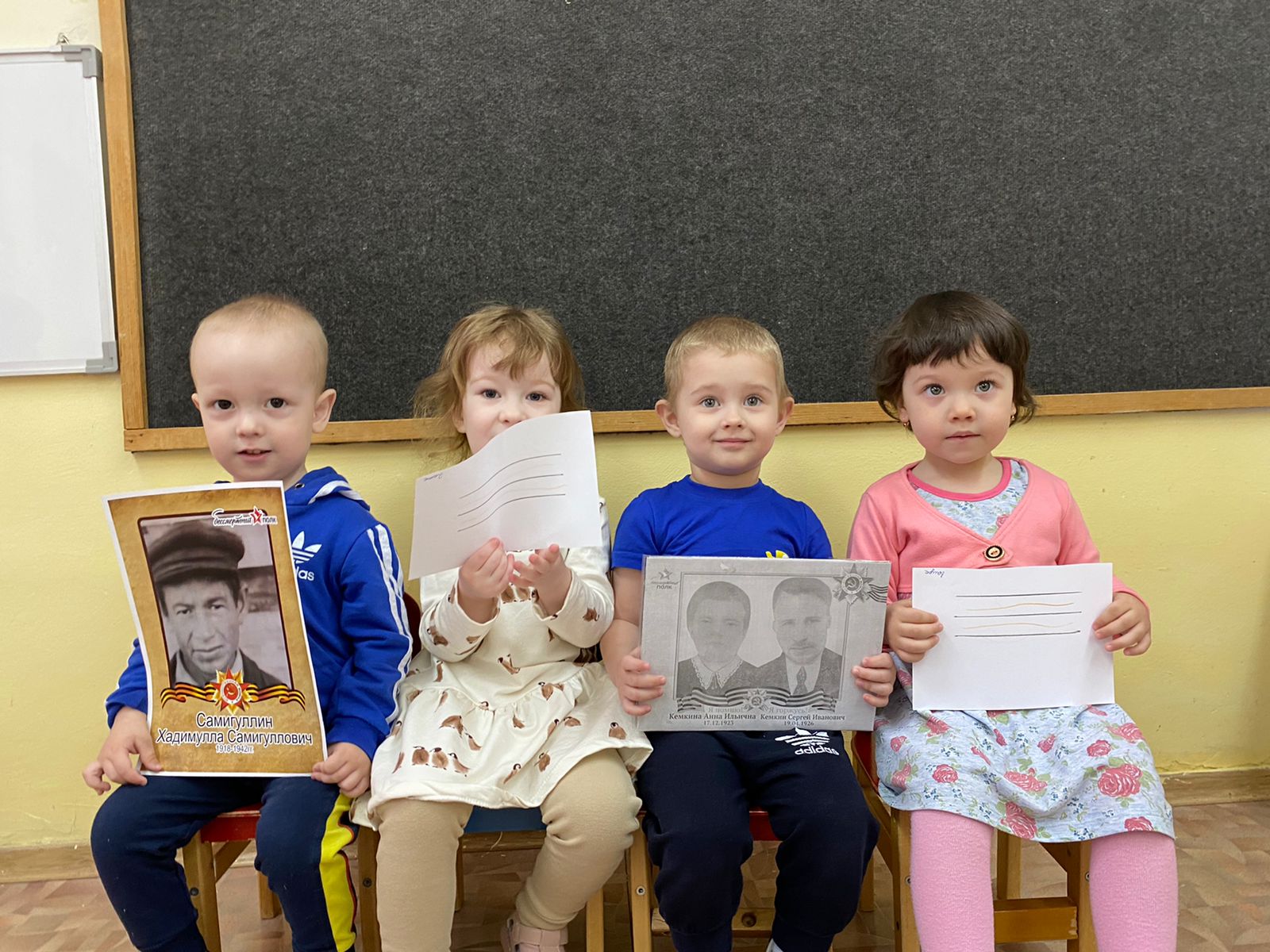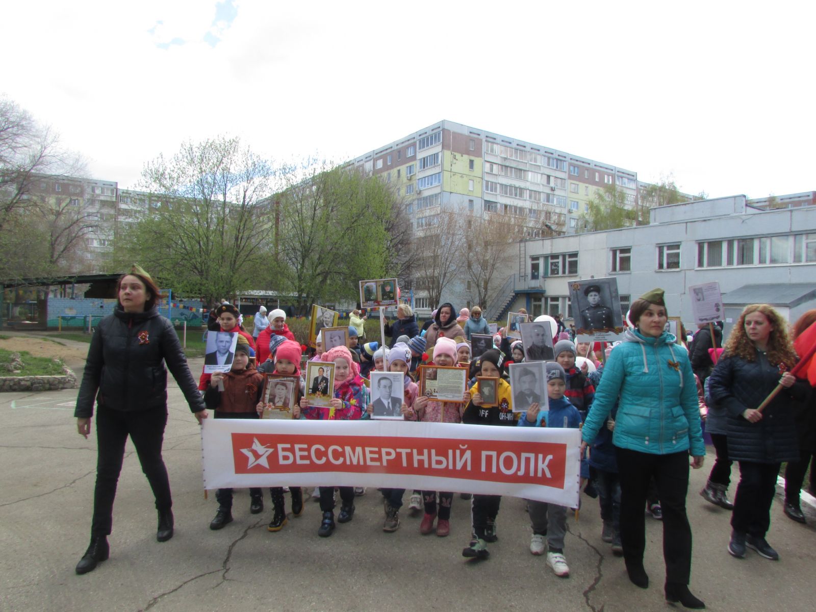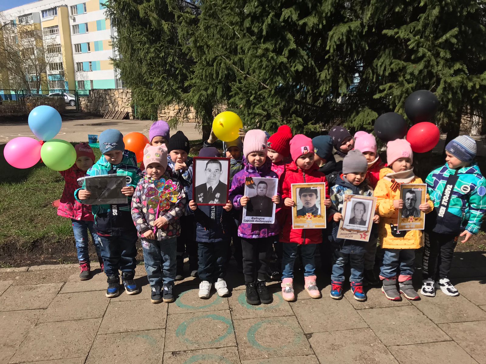 С 2012 года в нашей стране официально существует традиция: люди 9 мая выходят с портретами своих родственников, участвовавших в Великой Отечественной войне, которые не дожили до наших дней, на шествие Бессмертного полка. Сегодня и наш детский сад после двухлетнего перерыва из-за пандемии коронавирусной инфекции проходит в этом полку.