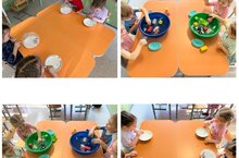 В 12 группе мы провели с детьми эксперимент " Изготовление цветных льдинок". Целью данного эксперимента является познакомить детей с двумя агрегатными состояниями воды- жидким и твердым. А также выявить свойства и качества воды: превращаться в лёд (замерзать на холоде, принимать форму ёмкости,в которой находится,теплая вода замерзает медленнее,чем холодная). Дети в процессе эксперимента обсудили свойства льда; выяснили,что теплая вода замерзает дольше,чем холодная;выяснили, как была сделана льдинка;как получилась такая форма;как держится верёвочка.