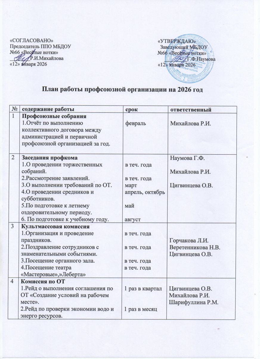 План работы профсоюзной организации на 2026 год