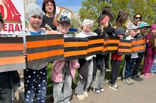 На улице Ахметшина состоялась акция «Лента Победы», где все сады выстроились в одну линию, и каждый ребенок с гордостью держал свою ленту, символизирующую память и уважение к подвигам наших предков. Ленту Памяти бережно держали в руках около 500 воспитанников в возрасте от 3 до 7 лет