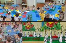 Каждый ребенок с большим энтузиазмом лепил яркие листики из пластилина, которые затем аккуратно вставлял в свой собственный конус — ствол березы. Каждый малыш вложил частичку своей души в это творение.