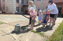 А потом начались весёлые соревнования: бег в мешках, ложка с яйцом, бег в галошах и игра "Ударь по ведру"! Все участники показали отличную командную работу и хорошее настроение!