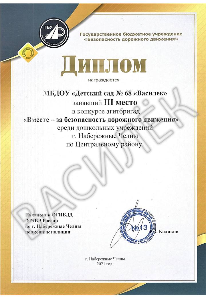 Опубликовано: 23.12.2021 Поздравляем команду нашего ДОУ с III местом в городсом конкурсе выступления агидбригад "Вместе – за безопасность дорожного движения" среди ДОУ г. Набережные Челны