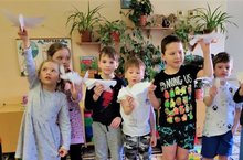 Ты лети, лети по свету,Голубь наш, из края в край.Слово мира и приветаВсем народам передай!Чтобы взрывы не закрылиНебо чёрной пеленой,Голубок наш белокрылый,Облети весь шар земной.Т. Коломиец -