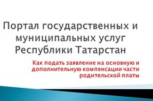 Уважаемые, родители!!!Перед Вами подробное руководство как подать заявление на основную и дополнительную компенсации части родительской платы через Портал государственных и муниципальных услуг Республики Татарстан -