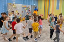 Ребята выполняли забавную разминку "Повторяй", собирали цветы с полянки, переносили воду, играли в игру "Как живёте?". Затем последовали динамичные эстафеты: "Попади в корзину" и "Бег в парах". Завершилось всё задорными танцами!