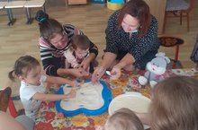 В пятницу, 02.10.2020г. состоялось развивающее занятие группы кратковременого пребывания "Рябиновые бусины". Под живой аккомпанемент фортепиано дети учились музыкальному приветствию и танцам. Зайчик, который пришел в гости к ребятам, начал учить их азам математики. А потом мы вместе лепили для него угощения из кинетического песка. Детки с удовольствием порезвились занимаясь спортом. Каждую пятницу в 10.00ч. ждем на развивающих занятиях родителей вместе с детьми.