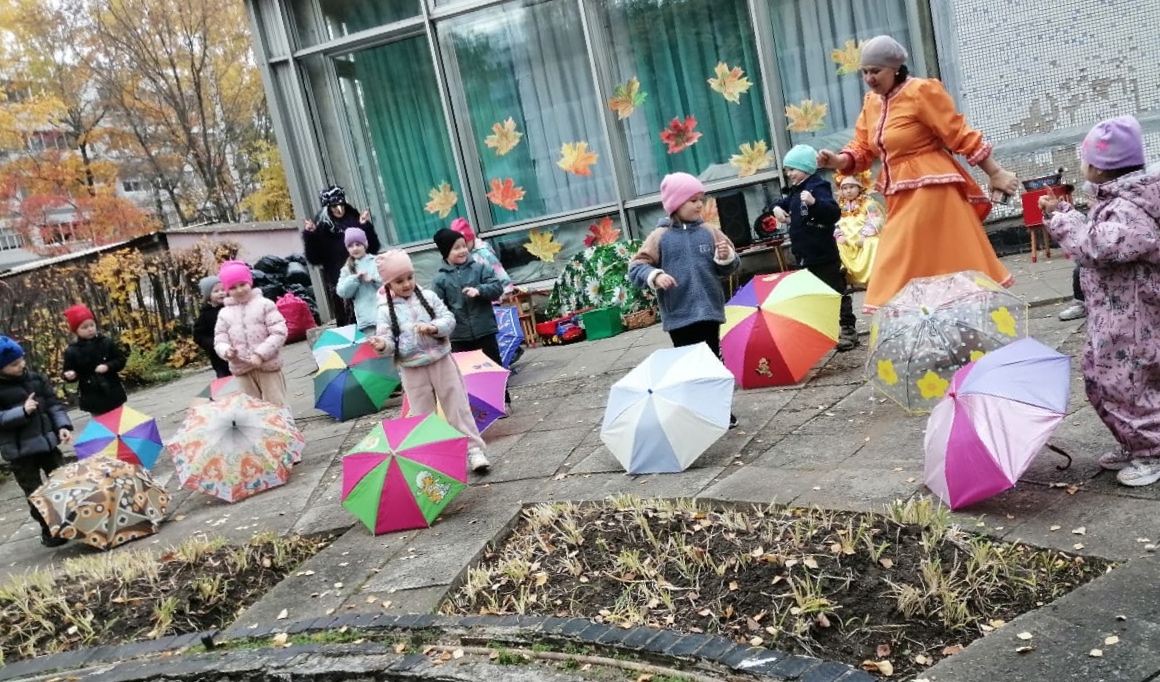 Веселые «Осенины» состоялись сегодня в нашем детском саду. Танцы с красивыми кленовыми листьями, стихи об осени, песни и игры. Урожай собран, цветники подготовлены к зиме, теперь можно и повеселиться!