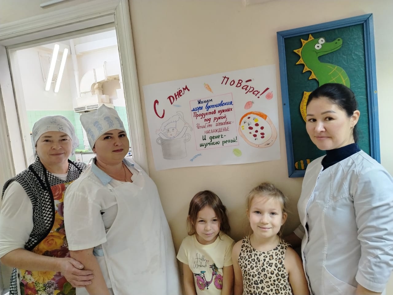 20 октября мы спешим поздравить наших сотрудников пищеблока с Днем повара! Благодарим шеф-повара Альбину Азатовну, супер-повара Нурию Камильевну, повара Ирину Валерьевну и подсобного рабочего Резиду Риязовну за благородный и тяжелый труд! Воспитанники подготовительной группы 2, 7 и старшей группы 6 подготовили сюрпризы для любимых поваров!
