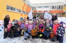 Активисты Движения познакомили дошколят с зимним видом спорта. Праздник начался с прослушиванием гимна. Дети отгадывали загадки о разных видах зимнего спорта, делали зарядку и соревновались в лыжных гонках, забивали шайбу ворота и т.д.