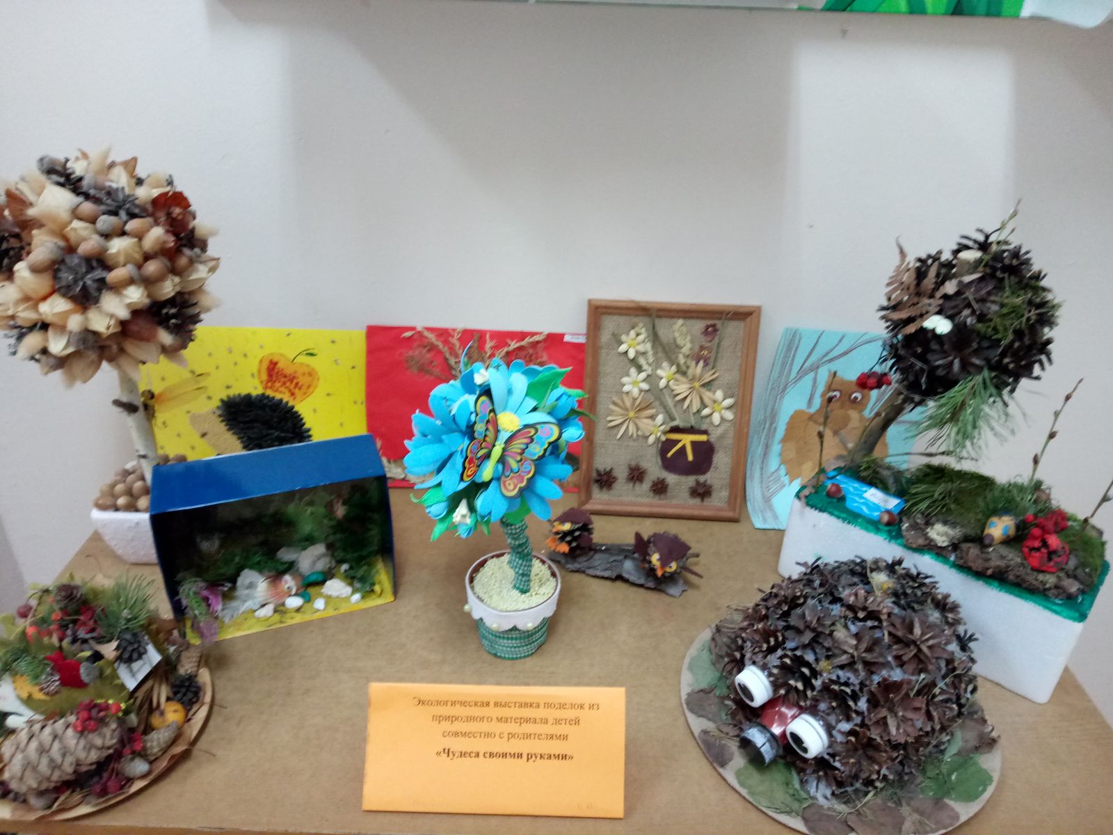 Традиционно в нашем детском саду организуется выставка поделок из природного материала, сделанная совместно руками детей и их родителей. Фото 1, 2.