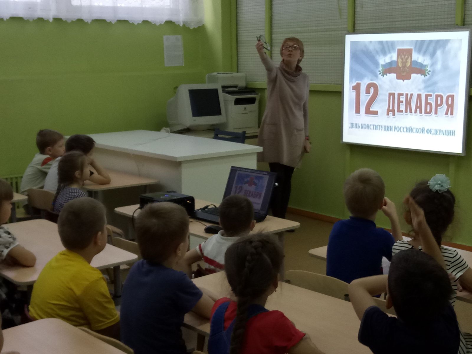 Рассказали какие закрепляет ценности Конституция, почему ее называют основным законом государства. Вместе с детьми закрепили государственные символы нашей страны: герб, флаг, гимн. Рассказывали о соблюдении законы РФ, развивая у детей чувство патриотизма и любви к своей Родине. Проводились занятия по художественному творчеству, где вместе обобщили знания детей о России, государственных символах, которые они и изобразили в своих работах.