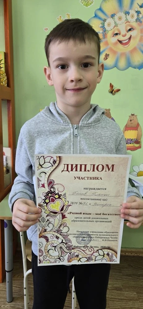 Мы с гордостью сообщаем, что наш воспитанник принял участие в городском конкурсе "Родной язык - мое богатство". Это замечательное событие, которое подчеркивает важность сохранения и развития родного языка.