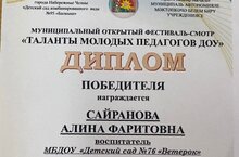 Поздравляем воспитателя нашего детского сада, Сайранову Алину Фаритовну, которая стала победительницей данного конкурса.