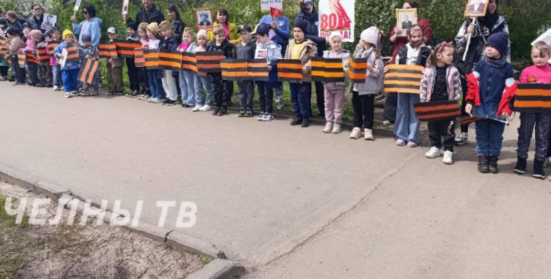 В преддверии Дня Победы юные челнинцы из детских садов № 68, 76, 95, 100 и 117 объединились для патриотической акции. 500 воспитанников вместе развернули символ памяти и мужества — Георгиевскую ленту длиной 300 метров.Это трогательное событие стало частью праздничных мероприятий, посвящённых 80-летию Великой Победе.