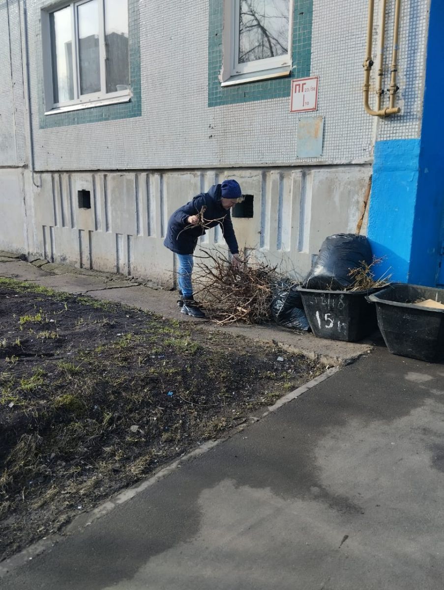 Наш педагог - Елена Станиславовна приняла активное участие в благоустройстве придомой территории. Мы за чистую территорию