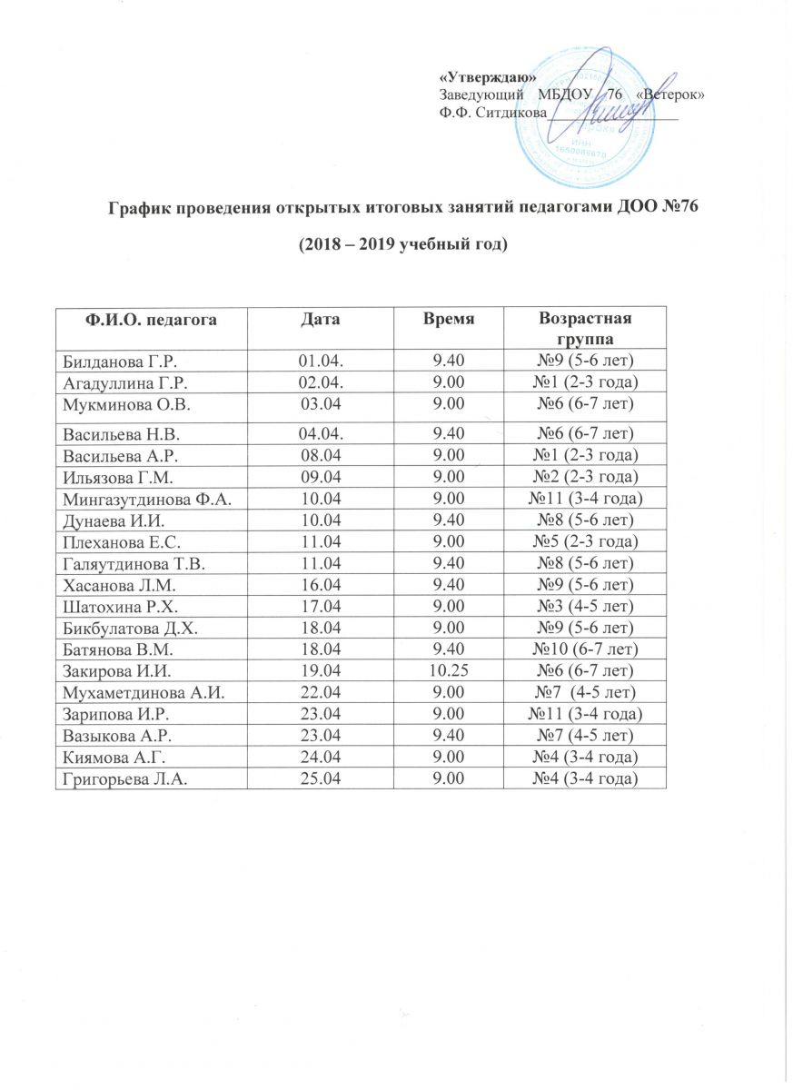 График открытых занятий. 29.03.2019