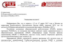 О трансляции IX Всероссийского робототехнического фестиваля «РобоФест-2017» 17.03.2017