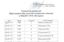 Уважаемые родители! Приглашаем вас на открытые занятия 28.04.2017