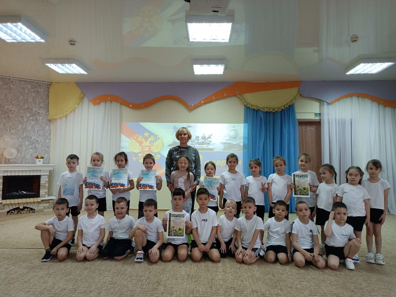 С детьми старших групп прошла интересная программа "Школа молодого бойца", где ребята узнали о важности защиты Родины, познакомились с военной историей и приняли участие в различных спортивных играх.