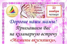 Уважаемые и наши любимые мамочки! Приглашаем 23 ноября на кулинарную встречу "Мамины вкусняшки" с угощениями, сделанными воими руками.