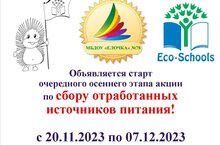 Объявляется старт очередного осеннего этапа акции по сбору отработанных источников питания! Время сбора с 20 ноября по 7 декабря 2023 года. Будут определены победители, самые активные участники акции в каждой возрастной группе и самая активная группа сада! Не дадим засорить окружающую нас природу!