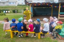 Герои нашего приключения – Лето и Зайчик, которые пригласили всех нас в захватывающее путешествие по волшебному миру. Вместе с ними детишки отправились на поиски солнечных лучиков, которые спрятались на различных станциях!