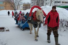 Сегодня в нашем саду проводили Зиму с песнями, гуляньями, с весельем и блинами, да катаньем на лошадях. Эх! Весело было!