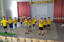 Утреннюю гимнастику неспроста называют ещё и зарядкой. Если в скором времени после пробуждения выполнить комплекс упражнений на все группы мышц, организм настроится на эффективную работу в течение всего дня. А если тренировка пройдёт под музыку и в увлекательной форме, то и настроение будет на подъёме! Гимнастика заряжает бодростью, энергией, чувством радости и удовлетворения. Это замечательное утреннее занятие и во многом традиция в дошкольных образовательных учреждениях. На фотографии старшая группа №3.