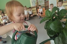 Растения в детском саду являются не только важной частью декора, но и элементом очищения воздуха. Это и хорошая возможность познакомиться с окружающим миром, научиться наблюдать и ухаживать за растениями. Это делает добрее и ответственнее наших детей. Воспитатель второй младшей группы №10 Галина Борисовна обучает детей правильно ухаживать за комнатными растениями. В процессе ухода за растениями дети узнали, что для роста цветов нужна земля, вода и воздух, а также научились правильно держать лейки, поливать растения и протирать крупные листочки влажной тряпочкой. В процессе работы у детей воспитывается любовь к растениям, желание ухаживать за ними, умение общаться с природой как живым организмом. -