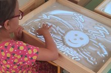 Песочная анимация — (рисование при помощи песка) появилась в 1970-х годах XX-го века. Успешный опыт Кэролайн Лиф, Ференца Цако и др. положил начало новому виду искусства – рисованию песком. Песочная анимация становится все более востребованной и эффективной формой работы с детьми. Рисование песком для детей – замечательный способ эмоциональной терапии, рекомендуемый детскими психологами, и средство развития воображения, расширения творческих навыков. Для ребенка возиться с сыпучим материалом – большое удовольствие, занятие подходит для дошкольников разных возрастных групп. Художественную терапию песком советуют психологи, дефектологи, логопеды.Песок как художественный материал имеет несколько преимуществ. И главное – расслабляющее, терапевтическое действие. Вторая польза рисования песком для детей – развивающее действие. Техника улучшает моторику пальцев рук, сенсорное восприятие и творческое мышление. В рисовании обычно задействованы обе руки, что положительно влияет на развитие и правого, и левого полушарий мозга. У школьников возня с песком улучшает навыки письма. Третья польза рисования на песке – раскрытие художественного потенциала, проявление фантазии.